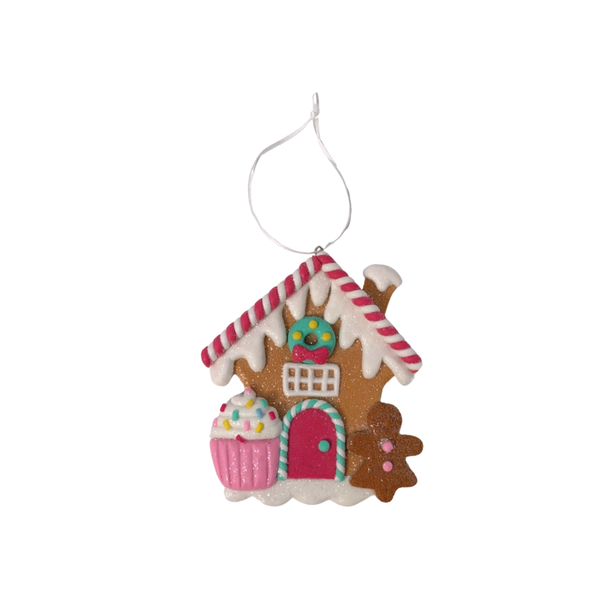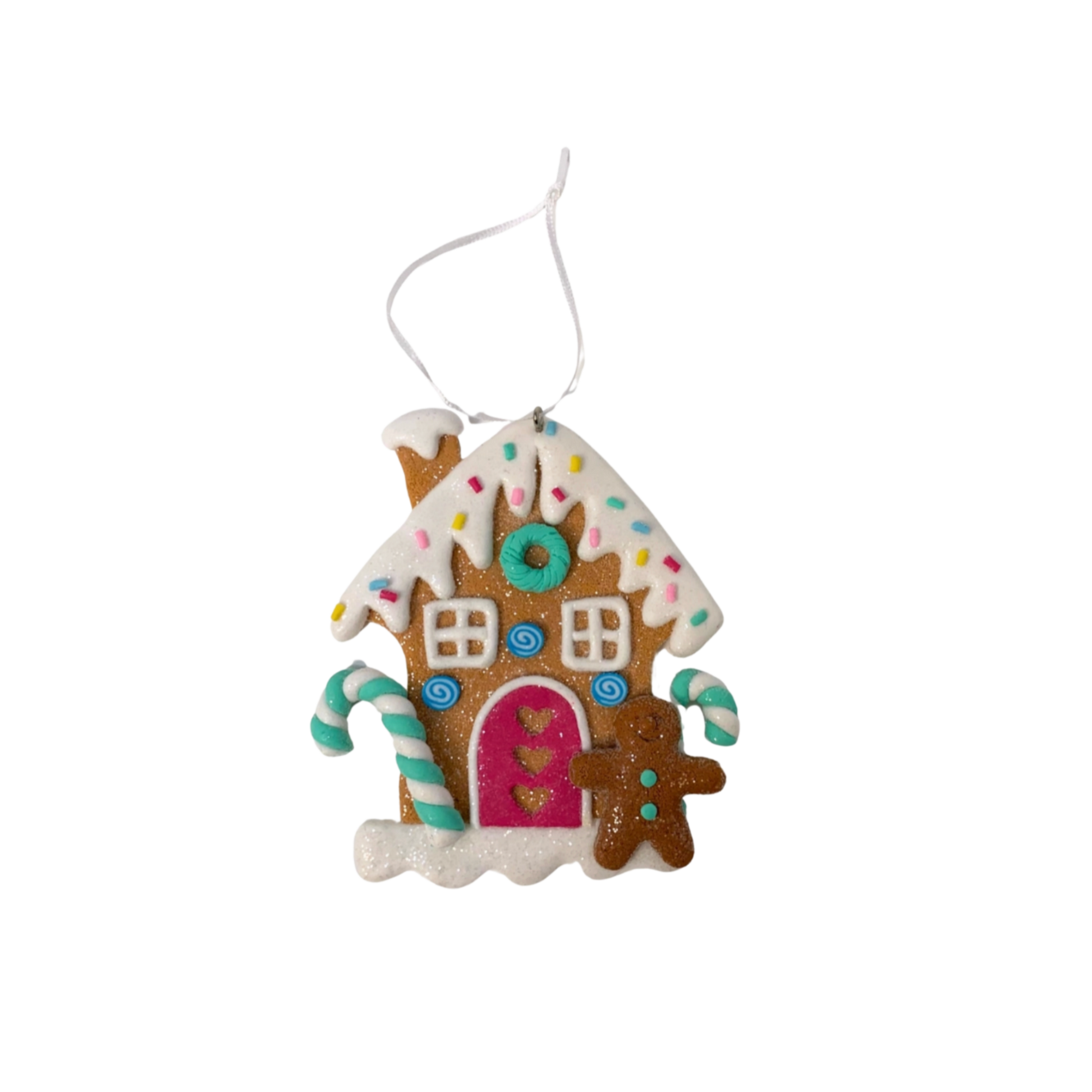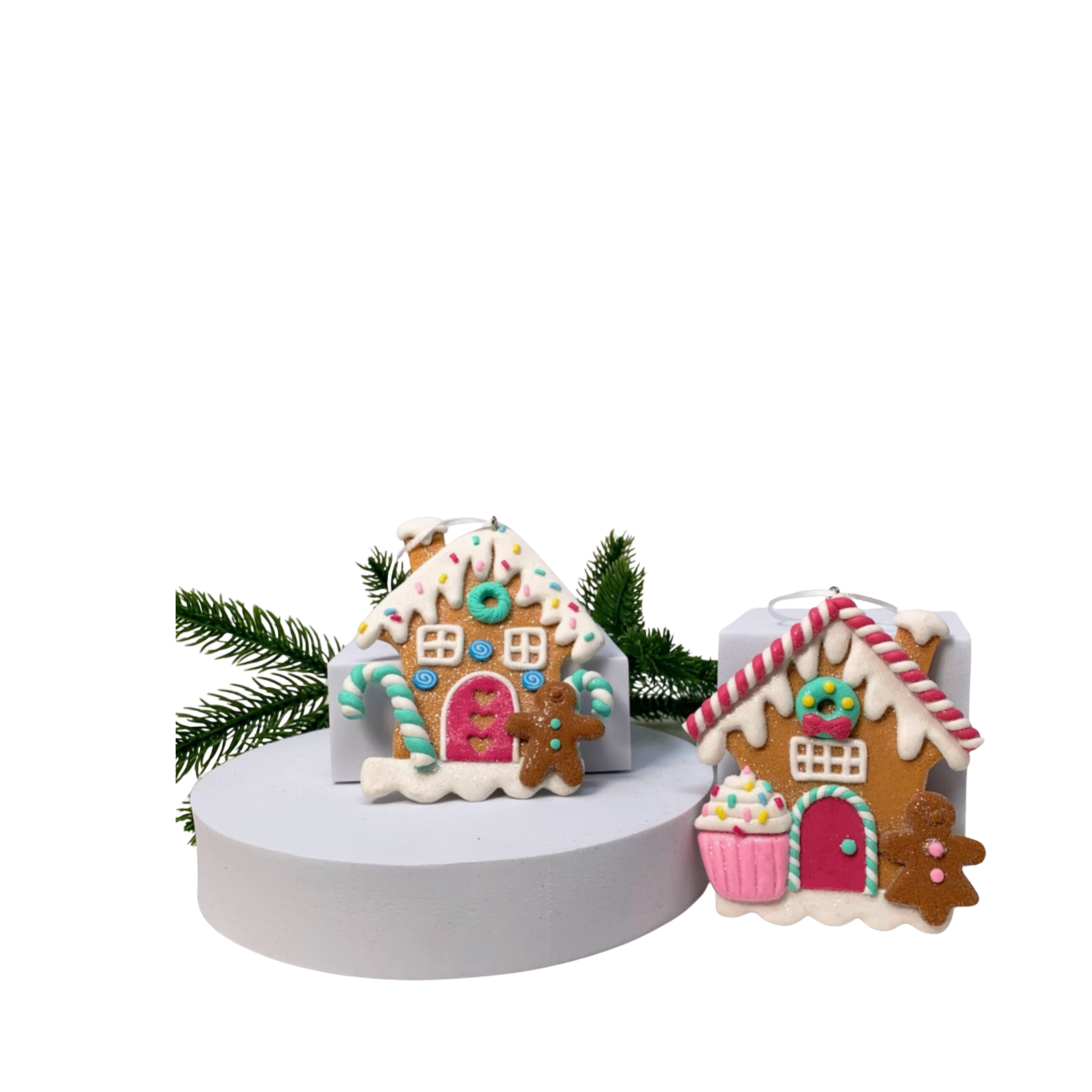 Pastel Candy Lane Gingerbread House Ornaments – Set of 2