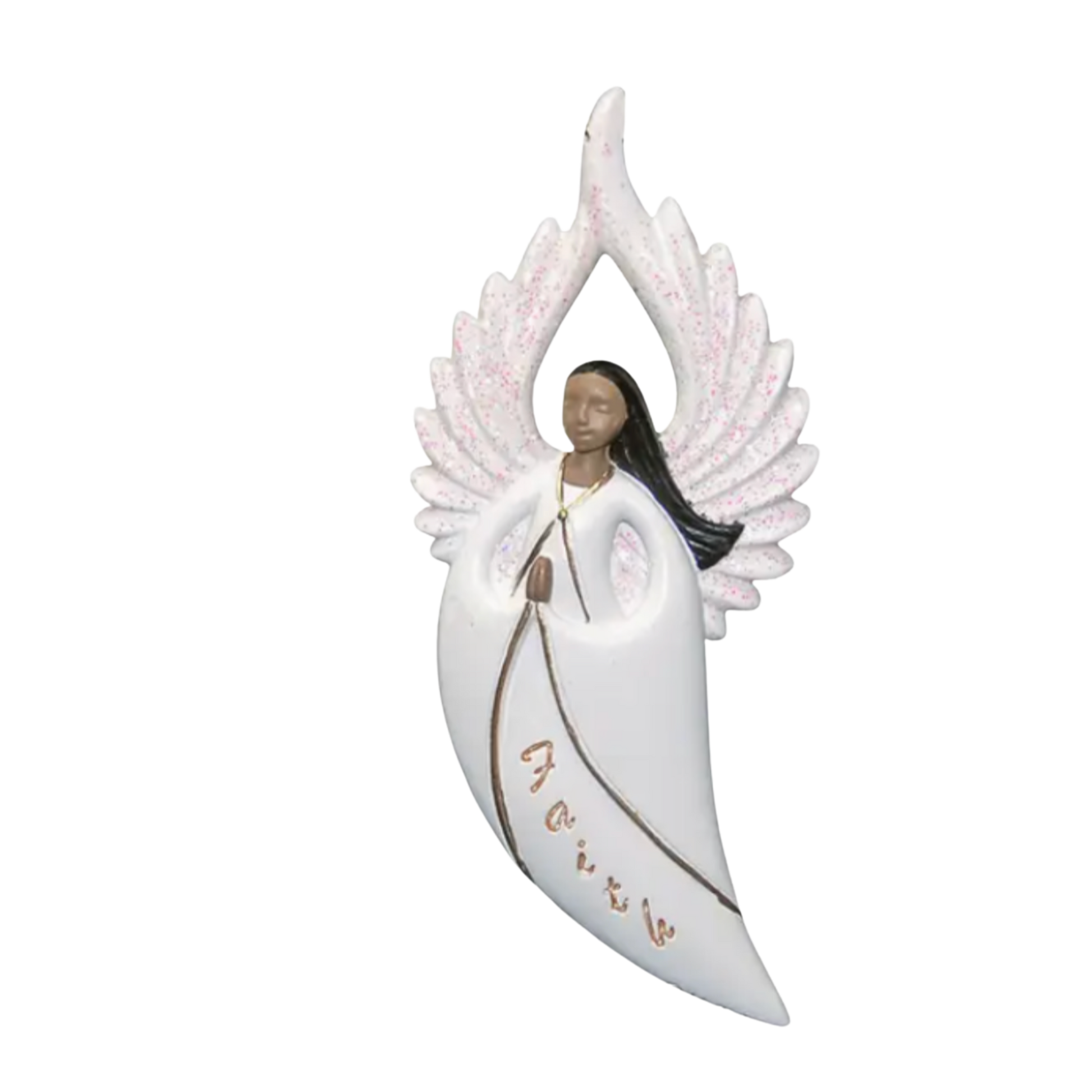 Bring grace, beauty, and intention to your holiday décor with this elegant flat-style angel ornament. Cloaked in flowing white robes with softly shimmering wings and hand-lettered gold script, each ornament offers a meaningful message to uplift and inspire.