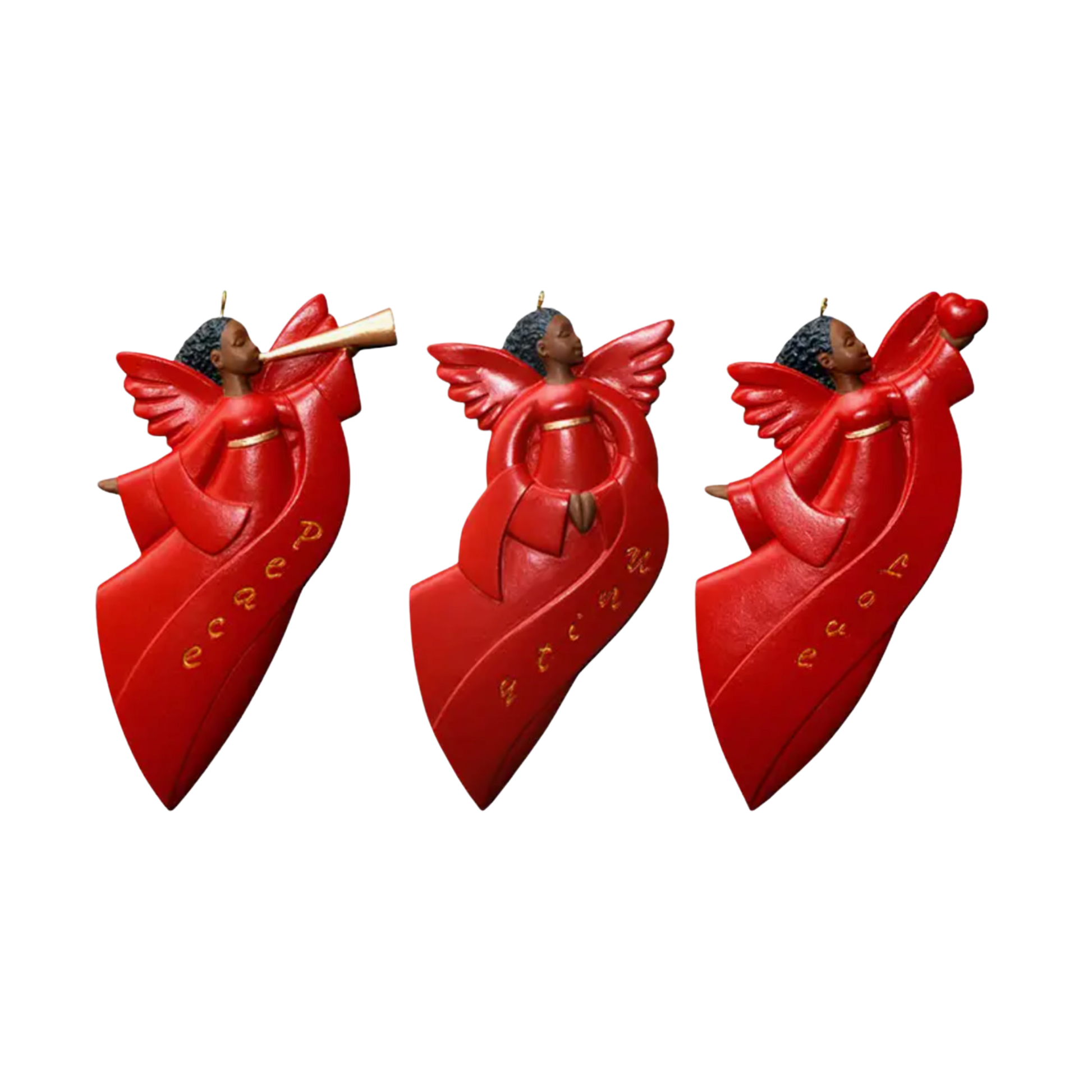 This graceful angel ornament set brings softness, soul, and sacred beauty to your holiday tree. Dressed in flowing red with golden accents, each Black angel holds a powerful word to center your season in calm and compassion.