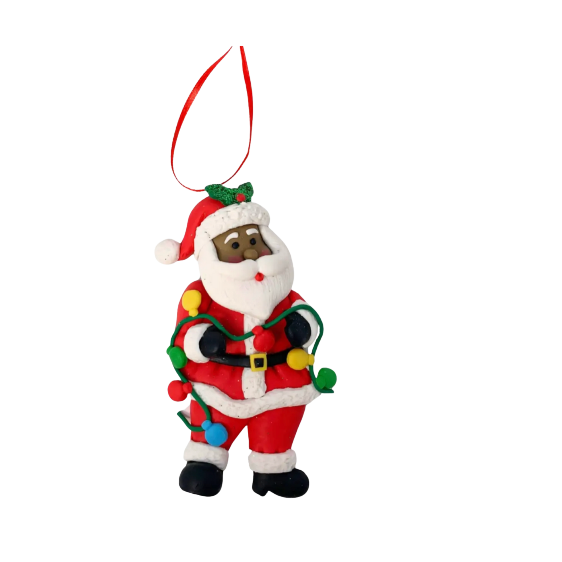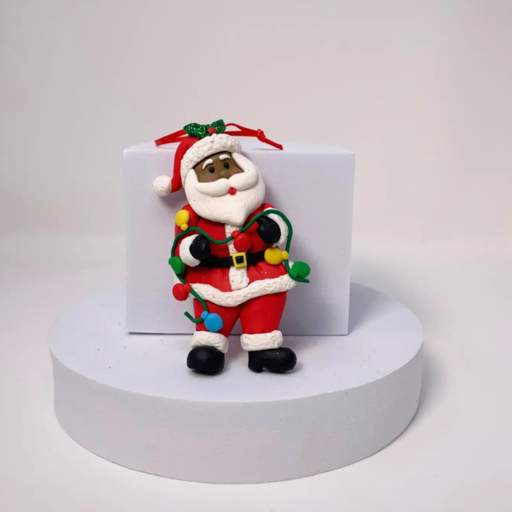 Add some cultural seasoning to your tree with our handcrafted 4-inch African American clay dough Santa ornament. Designed with vibrant colors, this ornament brings Black joy, warmth, and magic to your holiday décor.
